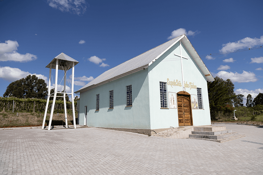 Igreja principal do Travessão Alfredo Chaves, construída por volta de 1924 e o campanário em 1941, para abrigar os sinos.