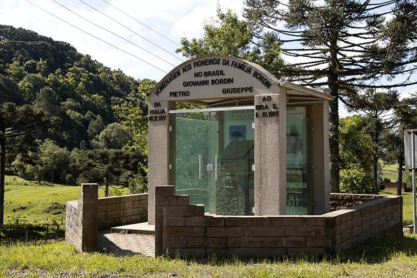 O local onde nasceram as raízes da família Bordin no Brasil. Vindos da Itália em 1888, Giovanni Bordin e os filhos Giuseppe Francisco e Pietro Andrea instalaram-se nos lotes 38 e 39 no Travessão Alfredo Chaves, antiga Vila Veneza. Na região, foram bem-sucedidos na exploração de erva-mate e Pietro fundou a serraria que forneceu madeira para construir as primeiras casas. A existência do memorial deve-se ao seu neto, o padre Jacob Bordin, falecido em 2021 após mais de 40 anos dedicadas à religião.